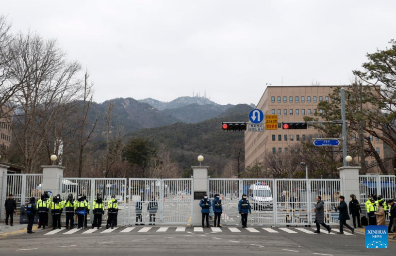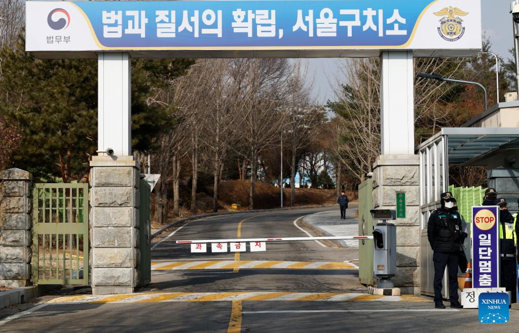 Oficiales de policía vigilan en el Centro de Detención de Seúl, en Uiwang, República de Corea, el 16 de enero de 2025. Un tribunal de la República de Corea rechazó la solicitud de liberación del presidente arrestado Yoon Suk-yeol, informaron el jueves diversos medios de comunicación. (Xinhua/Jun Hyosang)