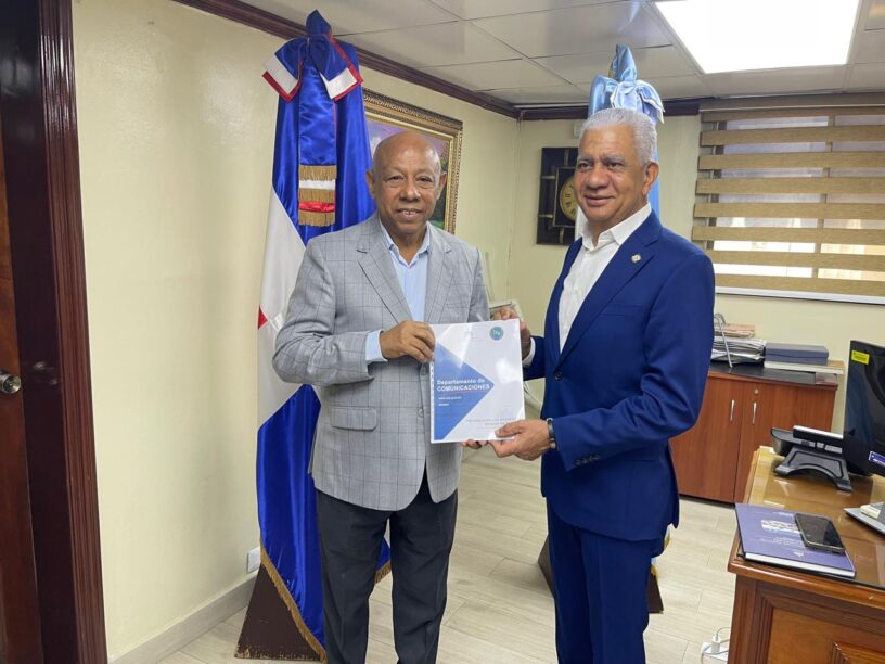 SANTO DOMINGO: El director del Instituto Agrario Dominicano (IAD), agrónomo Francisco Guillermo García, recibió este martes en su despacho la visita del presidente del Senado de la República, Ricardo de los Santos, a quien entregó un ejemplar de la Memoria Histórica institucional, que describe los antecedentes y trayectoria del organismo rector de la Reforma Agraria.