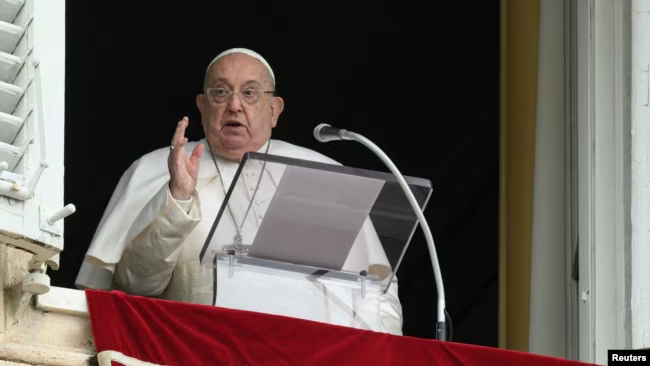 El Papa Francisco dirige la oración del Ángelus desde su ventana en el Vaticano, tras el alto el fuego entre Israel y Hamás, el 19 de enero de 2025.