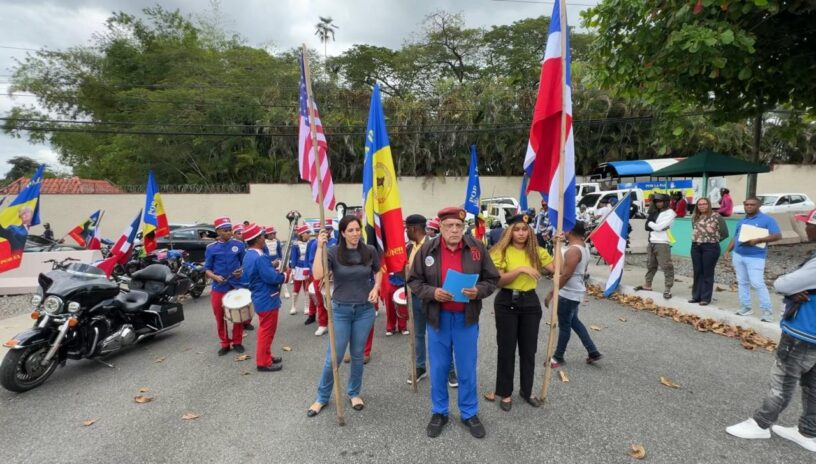 El acto, encabezado por «El Gallo», se llevó a cabo frente a la embajada de Estados Unidos, con un desfile de motoristas que ondeaban banderas norteamericanas y dominicanas. La apertura estuvo a cargo de la Diputada del Parlacen y Vicepresidente de la UDC, Krimilda Acosta San Miguel.