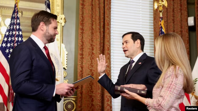 Rubio juró en una ceremonia en Washington junto al vicepresidente JD Vance, y en compañía de su esposa y sus cuatro hijos. Es el primero del gabinete del presidente Donald Trump en ser confirmado en su posición.