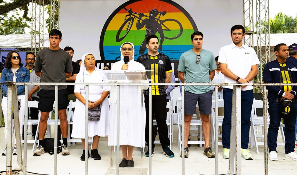 Ejecutivos de la empresa Calizamar, organizadores del evento ciclístico, hacen entrega de un donativo de 235 mil pesos a las monjas representantes del Hospicio San Vicente de Paul, Santiago, la cantidad fue recaudada de las inscripciones y patrocinios.
