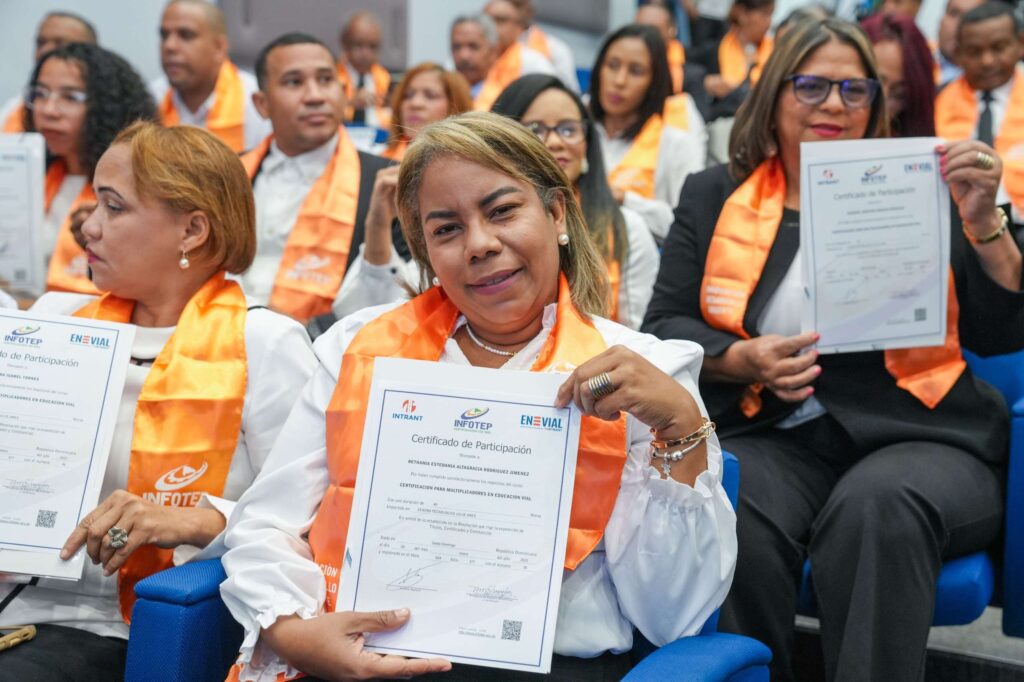 Santo Domingo. –El Instituto Nacional de Formación Técnico Profesional (INFOTEP), y el Instituto Nacional de Tránsito y Transporte Terrestre (INTRANT), certificaron a los primeros 80 facilitadores, quienes serán los encargados de multiplicar los conocimientos en educación vial, para desarrollar una cultura de movilidad responsable enfocada en la prevención, reducción de accidentes y en salvar vidas.