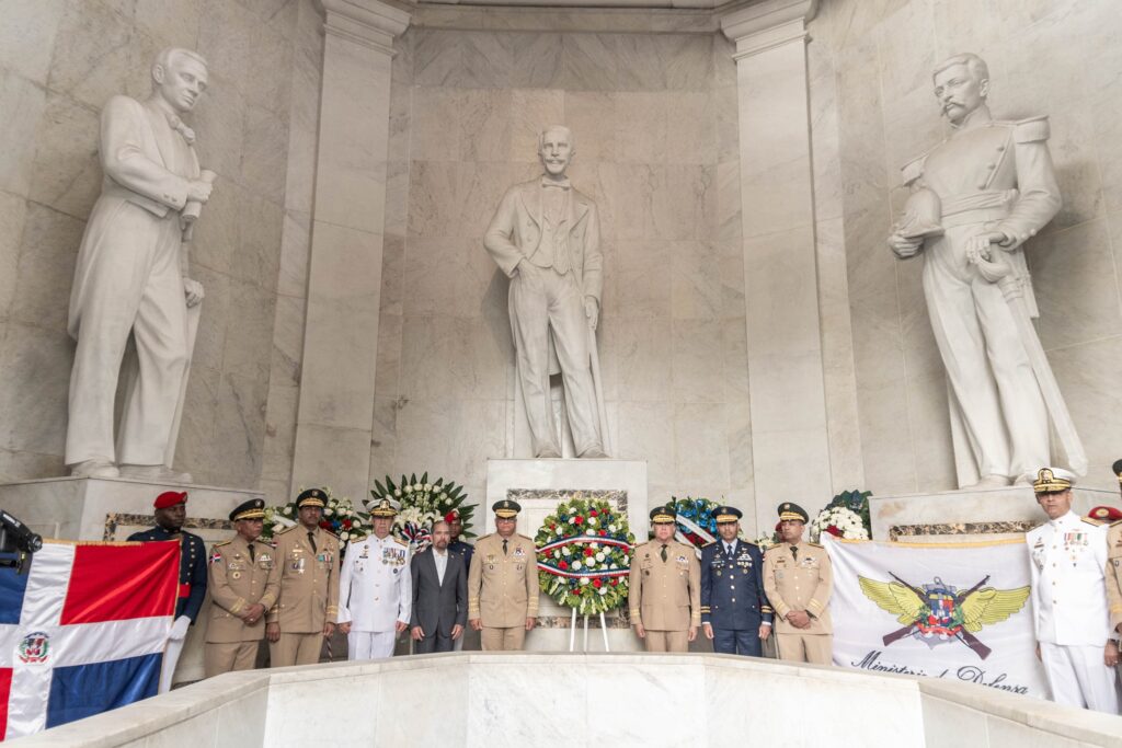 En un acto solemne en el Altar de la Patria de la zona colonial, las máximas autoridades del Ministerio de Defensa (MIDE), rindieron homenaje a los Padres de la Patria Juan Pablo Duarte y Díez, Francisco del Rosario Sánchez y Ramón Matías Mella y Castillo, con una ofrenda floral depositada en el lugar donde reposan los restos de los próceres independentistas.