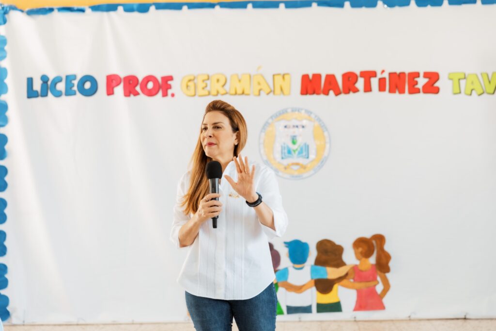 Santo Domingo, DN – La alcaldesa Carolina Mejía conversó con los jóvenes del liceo Profesor Germán Martínez Tavárez sobre el reciclaje, responsabilidad ciudadana y las funciones del cabildo.