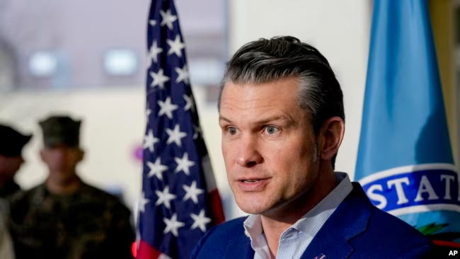 El martes, Hegseth habló con los periodistas en Stuttgart, Alemania, sede del Comando Europeo y del Comando Africano de Estados Unidos, la primera parada de su primer viaje internacional desde que prestó juramento el mes pasado.