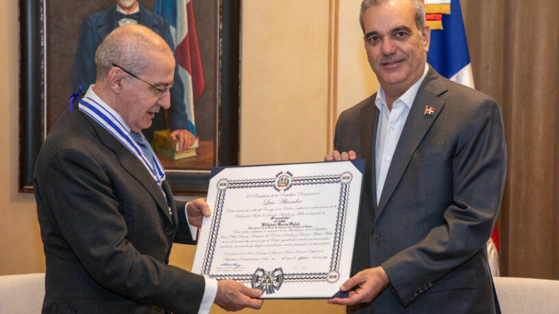 Santo Domingo. –El presidente Luis Abinader impuso la Orden al Mérito de Duarte, Sánchez y Mella, en el grado de Comendador, al académico español Dr. Feliciano Barrios Pintado, uno de los más importantes historiadores españoles.