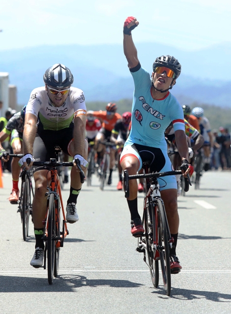 El capitalino Enmanuel Eduardo Núñez Marzán (Club Fénix) al ganar al esprint la quinta etapa de la Vuelta Ciclista Independencia Nacional 2018 (Foto: Víctor Manuel Pérez..