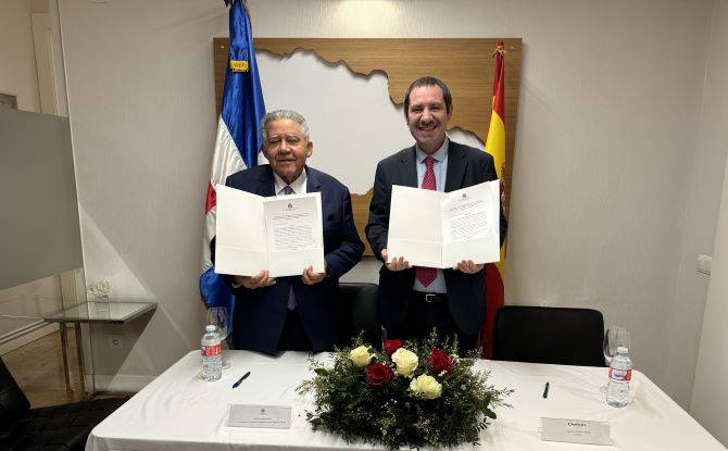 Madrid, España, 17 de febrero, 2025.- La Embajada de República Dominicana ante el Reino de España y la entidad Formación para el Desarrollo y la Inserción, S.L. (DEFOIN) suscribieron un Memorándum de Entendimiento con el propósito de ampliar las oportunidades de formación y fortalecer la inserción laboral de la comunidad dominicana residente en España, el pasado 5 de febrero, en la sede de la misión diplomática. Este acuerdo, rubricado por el Excmo. Sr. Juan Bolívar Díaz Santana, Embajador Extraordinario y Plenipotenciario de la República Dominicana ante el Reino de España, y el Sr. Agustín Chicharro Botija, consejero de DEFOIN, establece un marco de cooperación que permitirá a los ciudadanos dominicanos acceder a más de 8,000 plazas en programas formativos subvencionados, concebidos para fomentar su cualificación profesional y mejorar su competitividad en el mercado laboral español. Se ha acordado que al menos el 40% de los beneficiarios de los cursos sean nacionales dominicanos, lo que garantiza un acceso preferente a las iniciativas de capacitación.