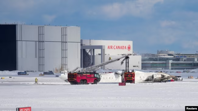 Los equipos de emergencia trabajan en el lugar del accidente aéreo de Delta Air Lines en el Aeropuerto Internacional Pearson de Toronto en Mississauga, Ontario, Canadá, el 17 de febrero de 2025.