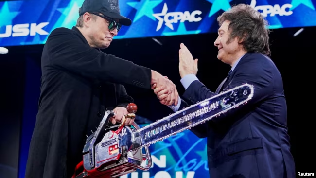 «Llegó la motosierra a DOGE», señaló Milei en su cuenta de X, en alusión al Departamento de Eficiencia Gubernamental que lidera Musk en Estados Unidos y que tiene el encargo del presidente Donald Trump de reducir y reformar el gobierno federal.