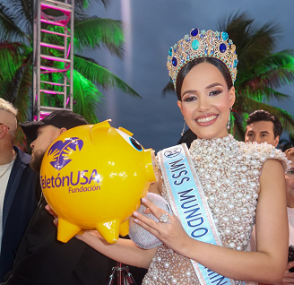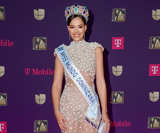 SANTO DOMINGO- En una noche llena de emociones, Mayra Delgado, Miss Mundo Dominicana 2025, en representación de Univisión 41 New York, se lució en la alfombra magenta de Premio Lo Nuestro 2025 con un vestido bordado en perlas y cristales diseño exclusivo de la maestra en la moda, Gianina Azar.
