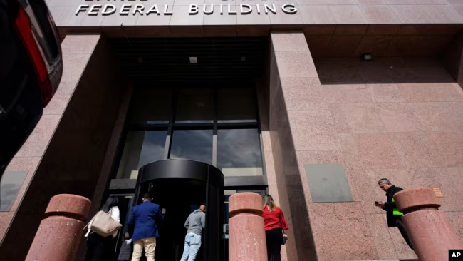 Personas entran en el edificio federal Earle Cabell en Dallas, el lunes 24 de febrero de 2025.