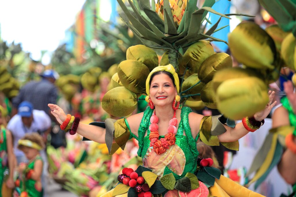 Este año, Las Musas de Punta Cana rindieron homenaje a los frutos dominicanos y a la riqueza natural del país, resaltando su abundancia y diversidad. En una amalgama de colores y sabores, Las Musas engalanaron sus trajes haciendo referencia a la identidad y tradición caribeña que representan la piña, coco, lechosa, cacao, sandia, mandarina, mango, guineo, guayaba, pitahaya y café, en un desborde de colorido y alegría.