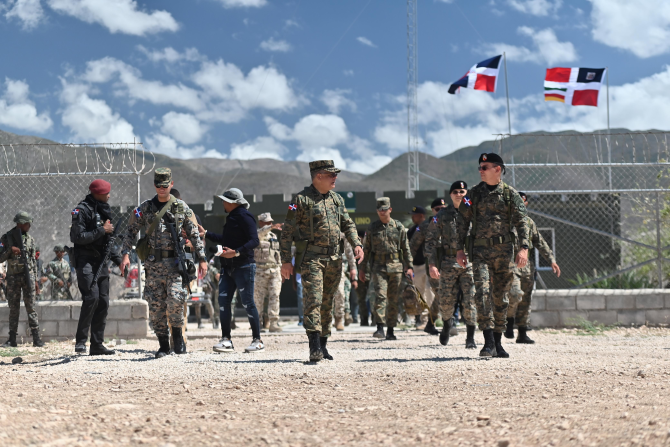 Santo Domingo, R. D., 1 de marzo, 2025.- El ministro de Defensa, teniente general Carlos A. Fernández Onofre, ERD., realizó un recorrido de supervisión en las provincias de Pedernales, Jimaní, Elías Piña y Dajabón, con el propósito de evaluar la preparación operativa de las tropas desplegadas en la frontera y verificar el avance de la construcción de la verja perimetral fronteriza.