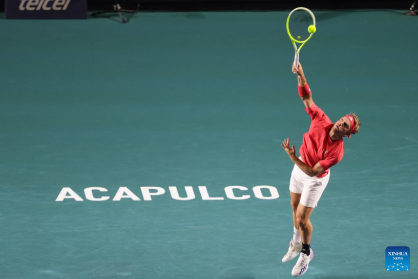 ACAPULCO, 1 marzo, 2025 (Xinhua) — Imagen del 28 de febrero de 2025 de Alejandro Davidovich Fokina, de España, devolviendo la pelota durante el partido de semifinal de individuales ante Denis Shapovalov, de Canadá, en el torneo de tenis Abierto Mexicano de la ATP 2025, en Acapulco, México. (Xinhua/Li Mengxin)
