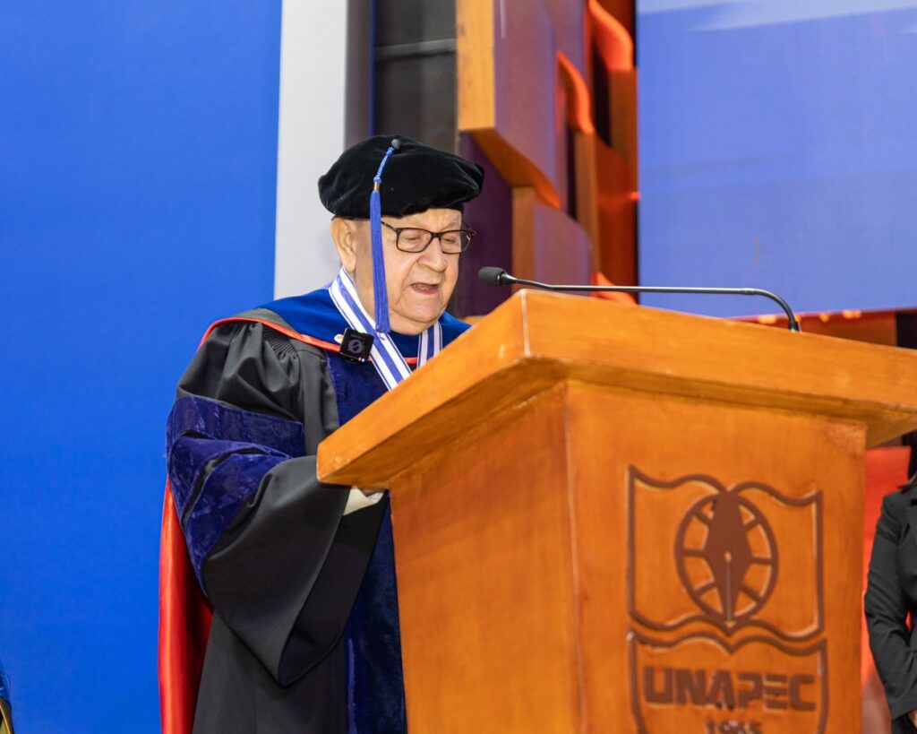 Al tiempo de agregar << la Universidad APEC reafirma su compromiso con la excelencia académica y el desarrollo sostenible, confiando en que esta nueva generación de profesionales llevará consigo los valores y conocimientos adquiridos para dejar una huella positiva en la sociedad. ¡Enhorabuena, graduandos!