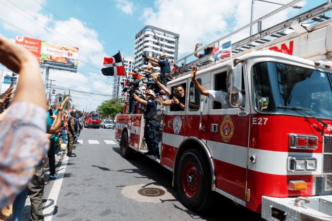 Posteriormente, continuaron con una misa en el Cuartel General y el tradicional desfile de camiones de los bomberos por las tres circunscripciones del DN, el cual contó con una presencia masiva de personas y familias que junto a sus pequeños celebraron el grandioso trabajo realizado por estos héroes.
