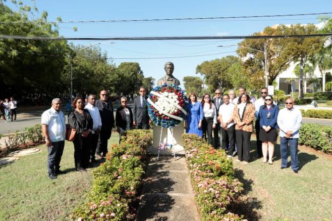 Santo Domingo, R. D., 11 de marzo, 2025.- La Universidad Autónoma de Santo Domingo (UASD) conmemoró el 208 aniversario del natalicio del patricio Francisco del Rosario Sánchez, con el depósito de una ofrenda floral en el busto erigido en su honor, en la sede central de la Academia.
