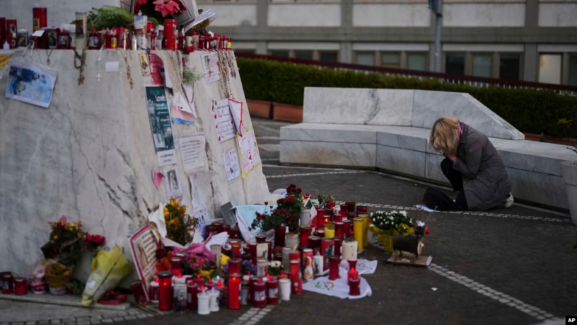 Una mujer ora cerca de un altar improvisado en el hospital donde está bajo tratamiento el papa Francisco, en Roma, Italia, el 11 de marzo de 2025.