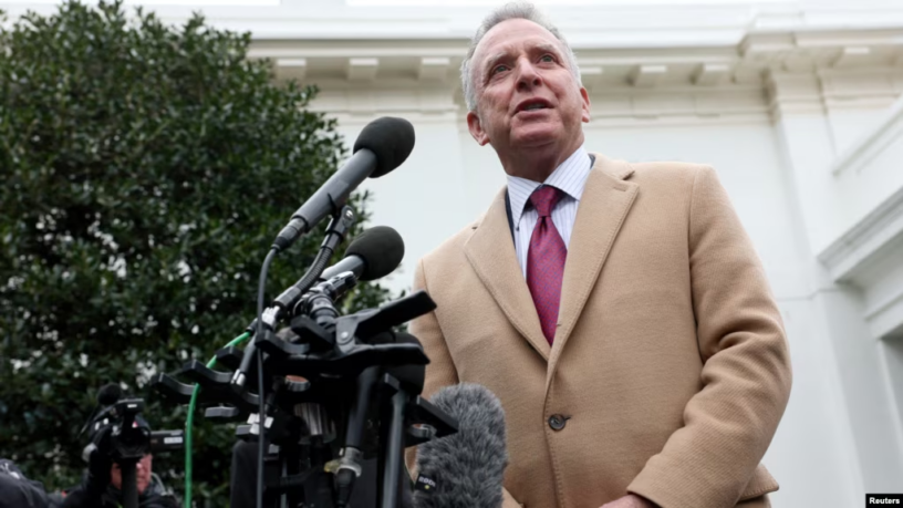 ARCHIVO – El enviado de Estados Unidos para Oriente Medio, Steve Witkoff, habla con miembros de los medios de comunicación fuera del Ala Oeste de la Casa Blanca en Washington, Estados Unidos, el 6 de marzo de 2025