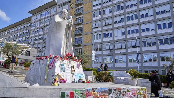 Cuatro días más tarde, el viernes 21 de febrero, a las 17:30 horas, el hospital Policlínico Gemelli, donde cientos de fieles empezaron a dejar velas y a orar por su salud, se convirtió en una improvisada sala de prensa.