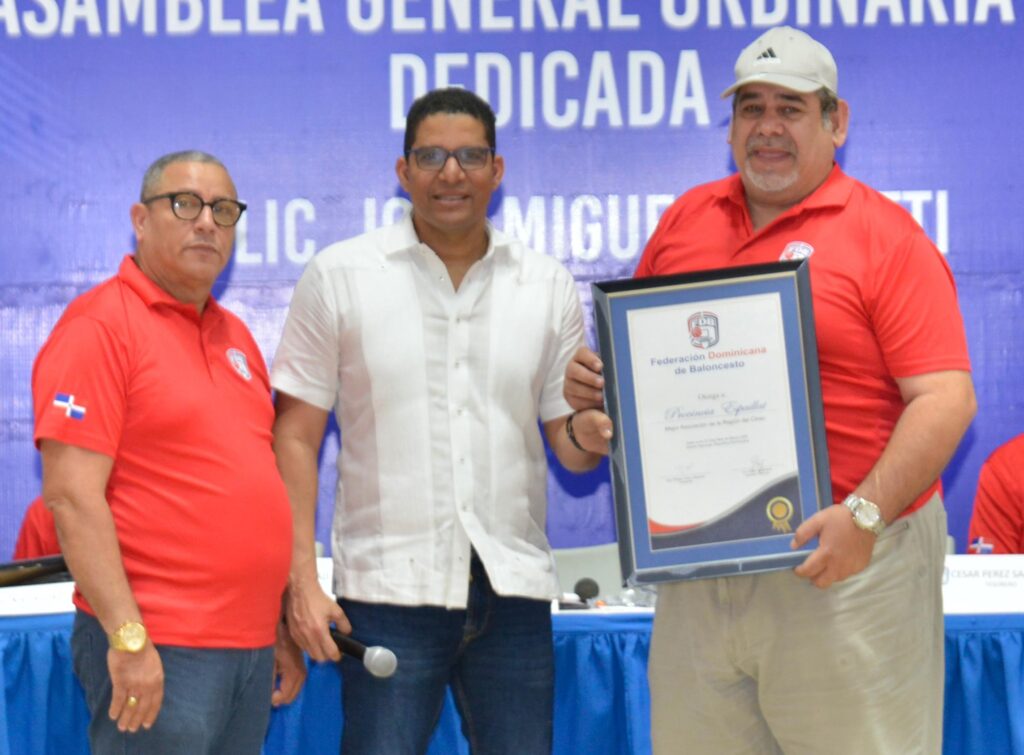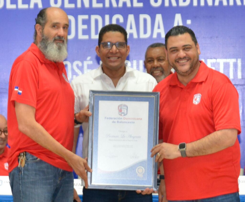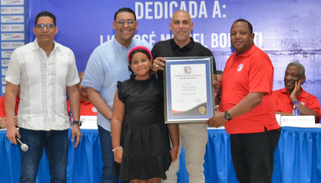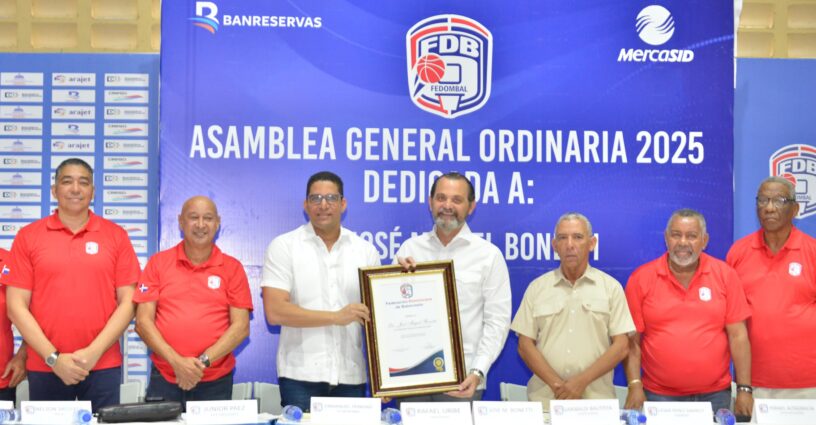 SANTO DOMINGO, RD.- La Federación Dominicana de Baloncesto (Fedombal) reconoció el sábado los aportes a la disciplina realizado por el empresario José Miguel Bonetti Dubreil, en el marco de la celebración de su Asamblea General Ordinaria Anual de Asociaciones.