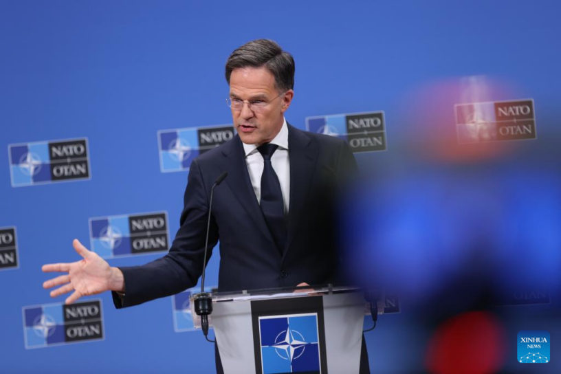 El secretario general de la Organización del Tratado del Atlántico Norte (OTAN), Mark Rutte, habla en una conferencia de prensa después de una reunión de ministros de Relaciones Exteriores de la OTAN en la sede de la OTAN, en Bruselas, Bélgica, el 4 de abril de 2025. El secretario general de la OTAN, Mark Rutte, aclaró el viernes aquí que la potencial adhesión de Ucrania a la OTAN no será incluida como parte de ningún acuerdo de paz. (Xinhua/Zhao Dingzhe)