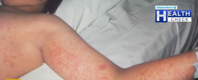 Fiebre alta, tos, goteo nasal y ojos rojos y llorosos, seguidos de una erupción cutánea característica, son los síntomas del sarampión, que en la mayoría de los casos son leves, pero sus complicaciones no muy frecuentes pueden ser graves con patologías como neumonía, ceguera y encefalitis.