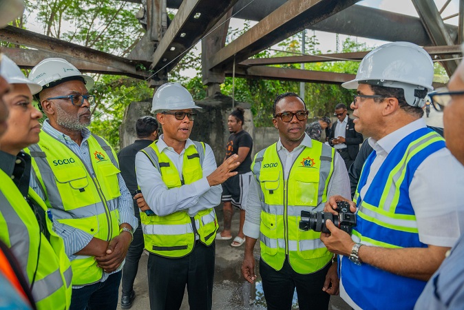 Tras el llamado del alcalde Dio Astacio, quien ha liderado la inspección del puente, los expertos estructuralistas ingenieros, Guillermo González y Nelson Morrison realizaron una visita que estuvo encabezada por el presidente de ACOSDE, Riubell Montes De Oca.