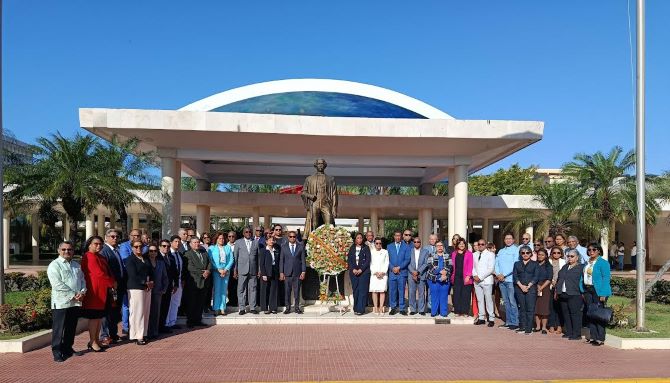 Santo Domingo, R. D., 21 de abril, 2025.- La Universidad Autónoma de Santo Domingo (UASD), a través de la Escuela de Administración de la Facultad de Ciencias Económicas y Sociales (FCES), depositó este lunes una ofrenda floral en la estatua del Patricio Juan Pablo Duarte, para conmemorar el Día Nacional del Administrador.