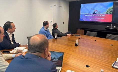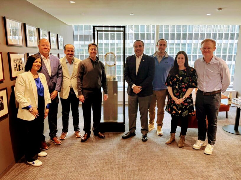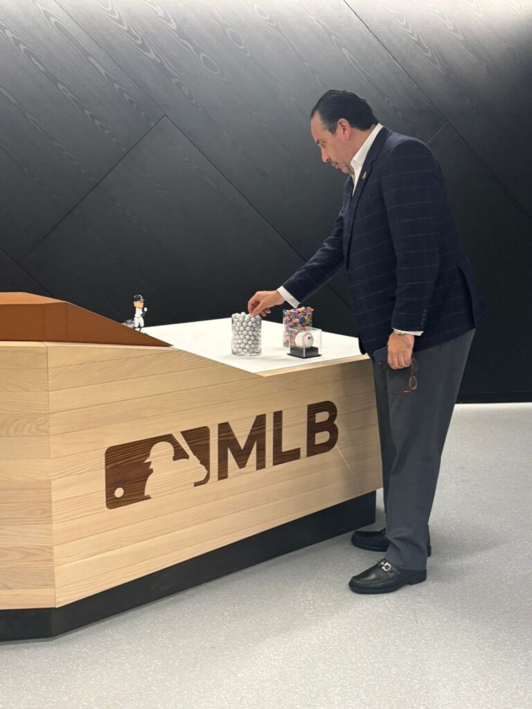 Los ejecutivos de MLB recibieron en su sede principal de la ciudad de Nueva York a una delegación del INEFI encabezada por su director, quien se hizo acompañar de Ramón Pratts, director de Tecnología, y Francisco Busto, asistente ejecutivo.