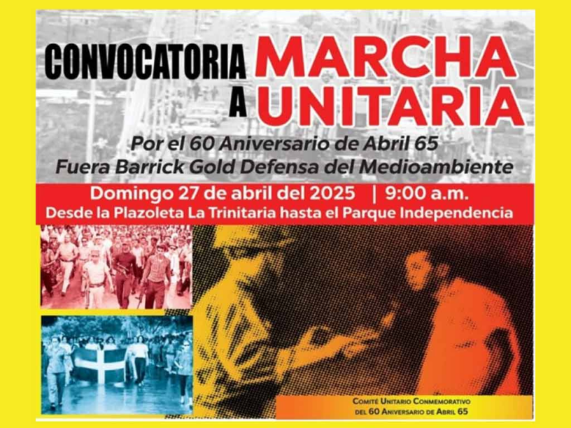 Santo Domingo, 27 abr (Prensa Latina) Una marcha popular por la defensa de la soberanía nacional y la protección ambiental tendrá lugar hoy en la República Dominicana, organizada por el Comité Unitario de Conmemoración del 60 aniversario de la Revolución de Abril de 1965.