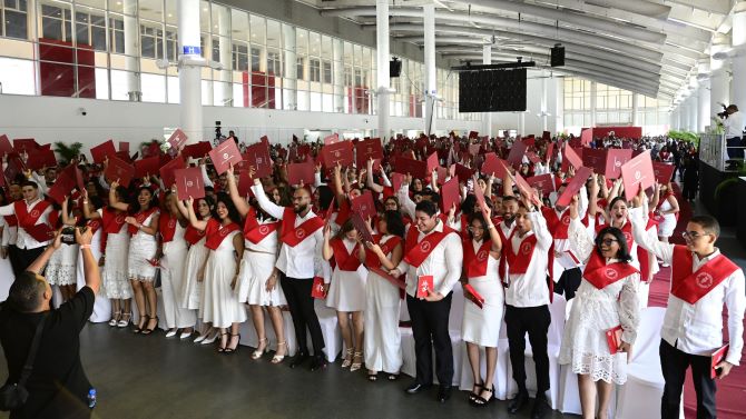Santo Domingo, R. D., 27 de abril, 2025.- El Instituto Tecnológico de Santo Domingo (INTEC) graduó este sábado a 911 profesionales en los niveles de grado y postgrado, durante su septuagésima ceremonia de graduación, en la que exhortó a los graduandos a imprimir el sello inteciano de compromiso ético en su ejercicio profesional, que les haga parte de un gran movimiento hacia un cambio de prácticas y de cultura hacia una de previsión, de combate oportuno a los riesgos y de cumplimiento con las responsabilidades asociadas.