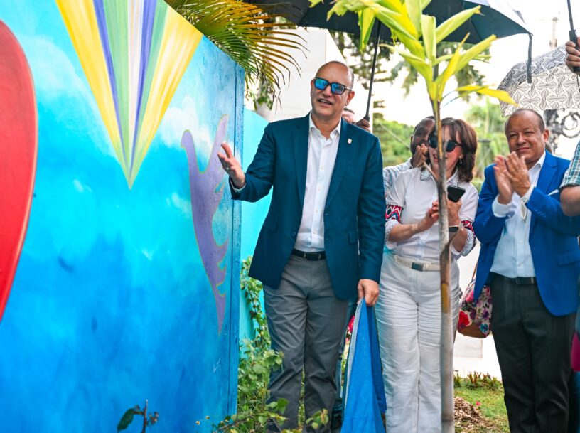 Santiago de los Caballeros. – La Alcaldía de Santiago, a través de su Dirección de Cultura y Arte, develó el jueves un mural inspirado en la fe cristiana, una obra que refleja esperanza, amor y unidad en Cristo, en la fachada frontal del Instituto Evangélico, ubicado en la avenida Juan Pablo Duarte, frente al Palacio Municipal.