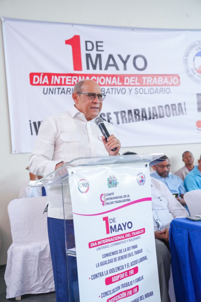 Durante su intervención, el titular del INFOTEP hizo un recorrido por la historia del sindicalismo en el país, resaltando las conquistas logradas en favor de los trabajadores y el papel que ha jugado la formación técnico-profesional en su empoderamiento.