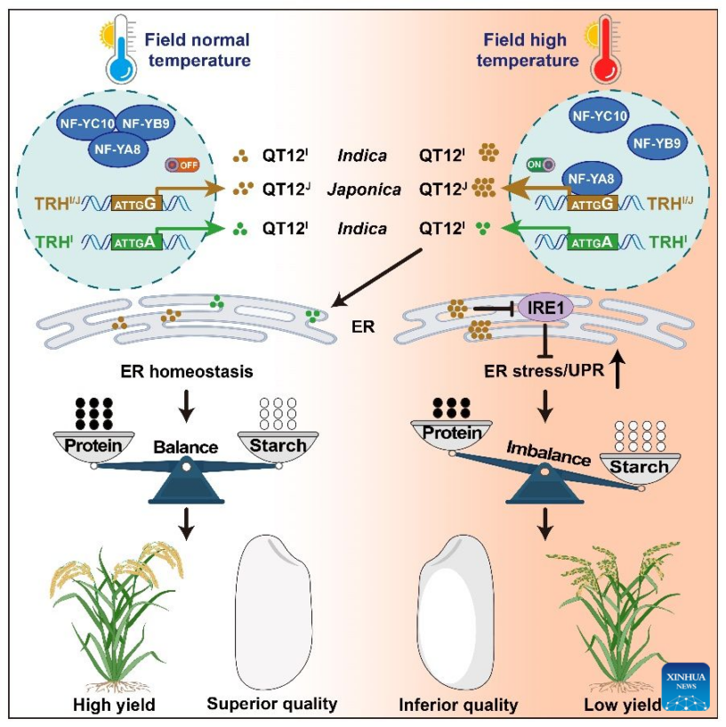 En condiciones de temperaturas elevadas, el gen QT12 interactúa con el complejo proteínico NF-Y para proteger los granos, como si se tratara de un cortafuegos en su interior, permitiéndoles así afrontar el calor extremo y estabilizando simultáneamente la síntesis de almidón y proteínas, explicó Li Yibo, autor correspondiente de la publicación.