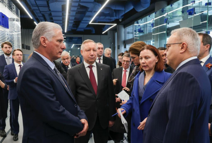 Acompañado por el gobernador de San Petersburgo, Alexander Beglov, el jefe de Estado antillano como parte de su visita oficial a Rusia iniciada este 4 de mayo, llegó hasta los predios de la empresa farmacéutica Vertex, ubicada en el sitio Novoorlovskaya de la Zona Económica Especial de la ciudad.