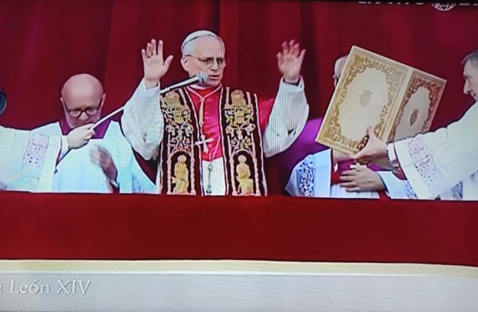He aquí la traducción en español: “Eminentísimo y Reverendísimo Señor, Señor Robert Francis Cardenal de la Santa Romana Iglesia Prevost, quien ha tomado el nombre de León XIV”.