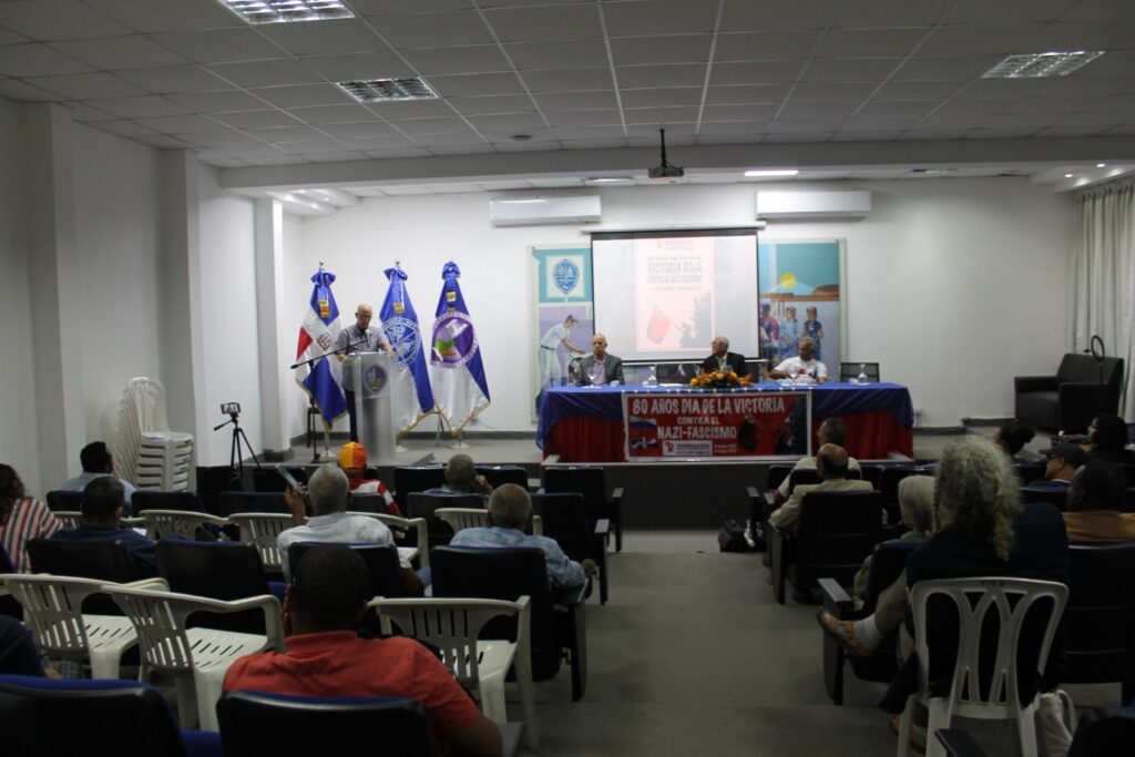 La Internacional Antifascista Capítulo Dominicano conmemoró el 80 aniversario de la victoria soviética sob re el nazi f ascismo con una significativa ofrenda floral en la Plaza Patriótica a los Caídos de la Revolución de Abril de 1965 . La conmemoración continuó en el Paraninfo de la Facultad de Humanidades de la Universidad Autónoma de Santo Domingo (UASD), donde se llevó a cabo el panel «80 años de la victoria, importancia de la derrota del fascismo de ayer y hoy».