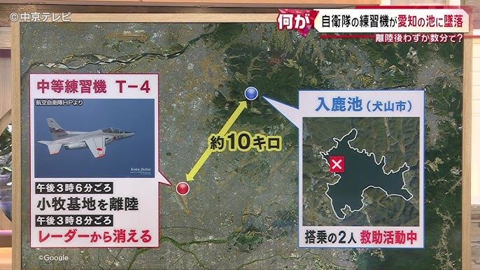 TOKIO, 14 may (Xinhua) — Un jet de entrenamiento T-4 de la Fuerza de Autodefensa Aérea de Japón se estrelló hoy miércoles en un lago en la prefectura de Aichi, lo que provocó la desaparición de dos tripulantes. El T-4 despegó de la Base Aérea Komaki a las 15:06 (hora local) y desapareció del radar alrededor de las 15:08 horas al noreste de la base, informó la cadena nacional NHK. Los departamentos locales de bomberos recibieron llamadas de emergencia indicando que un objeto similar a un avión se había estrellado en un lago del área. En los alrededores del lago Iruka se encontraron partes de la aeronave, pero hasta las 20:00 horas los dos tripulantes no habían sido localizados. No se reportarán víctimas en el área circundante. Una mancha de aceite se observaba en el lado norte del lago Iruka, en tanto la Fuerza de Autodefensa y la Policía continúan buscando a los dos tripulantes mientras investigan los detalles del incidente.