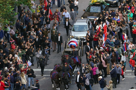 MONTEVIDEO, 14 may (Xinhua) — El cortejo fúnebre del expresidente de Uruguay José «Pepe» Mujica, partió hoy miércoles desde la céntrica Plaza Independencia en la ciudad de Montevideo, frente al Palacio Estévez que fue la casa oficial de Gobierno y luego se dirigió al Palacio Legislativo para la capilla ardiente. Un carruaje tirado por seis caballos montados por efectivos de la unidad histórica de los blandengues trasladado el féretro ya su paso fue saludado por millas de personas en la avenida 18 de Julio y otras calles céntricas de la capital uruguaya. Alrededor de las 10:00 hora local (13:00 GMT), el presidente Yamandú Orsi colocó la bandera uruguaya sobre el féretro con el cuerpo de Mujica, quien falleció el martes a los 89 años de edad, al tiempo que el secretario de la Presidencia, Alejandro Sánchez, colocó el Pabellón de Artigas sobre el ataúd. El traslado comenzó poco después, en el que Orsi acompañado por su gabinete y otros representantes del Gobierno, así como el oficialista del Frente Amplio (FA), siguió el cortejo a pie. La cureña pasó por la sede del Movimiento de Participación Popular (MPP), sector que fundó Mujica y que es el mayoritario en el FA y el Movimiento de Liberación Nacional-Tupamaros, que operó en las décadas de 1960 y 1970 como guerrilla urbana. La capilla ardiente de Mujica tiene lugar en el Palacio Legislativo, que es la sede del Parlamento de Uruguay, desde las 15:00 hora local y estará abierta al menos hasta mañana jueves. Mujica, quien gobernó entre 2010 y 2015, falleció el martes en su «chacra» (granja) a las afueras de Montevideo, a raíz de un cáncer de esófago diagnosticado en abril de 2024, por lo que el Gobierno ha decretado duelo oficial hasta el próximo viernes.