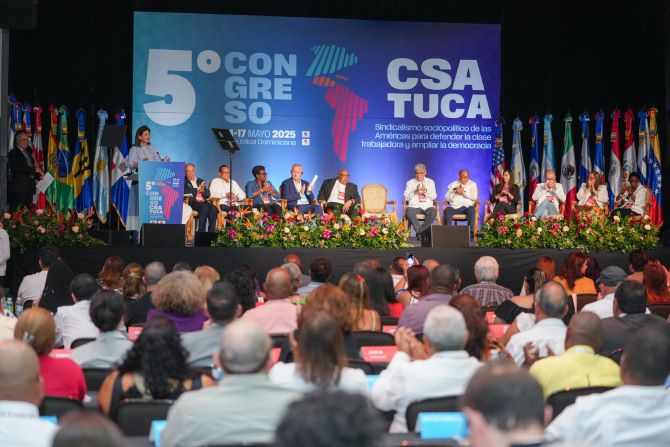“Lo que hacen ustedes como Confederación Sindical de las Américas es esencial por ese compromiso con los derechos humanos, la igualdad de género y la solidaridad intergeneracional”, puntualizó.