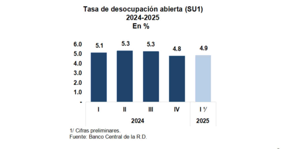 La tasa de desocupación se situó en 4.9 % en el primer trimestre de 2025 para una reducción interanual de 0.2 puntos porcentuales (p.p.).