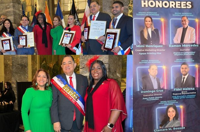 NUEVA YORK, 23 de mayo, 2025.- En un ambiente cargado de orgullo e identidad quisqueyana, la Fundación del Desfile Nacional Dominicano -NatDDP- que dirige Cristina Contreras, y la presidenta del condado de El Bronx, Vanessa Gibson, reconocieron la noche de este este jueves cinco connacionales ejemplares y por su accionar como profesionales en las diferentes ramas que desempeñan.