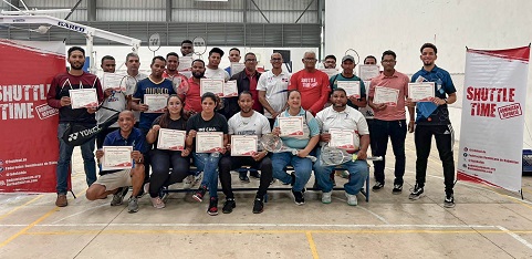 El presidente de la Federación Dominicana de Bádminton (FEDOBAD), Nelson Javier Ozuna, entre otros técnicos, entregó certificados de participación en el curso-taller “Shuttle Time”, llevado a cabo en Salcedo, provincia Hermanas Mirabal.