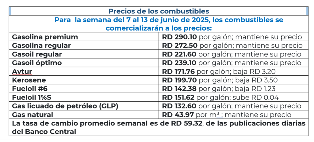 Santo Domingo.- El viceministro de Comercio Interno del Ministerio de Industria, Comercio y Mipymes (MICM), Ramón Pérez Fermín, informó que, para la semana del 7 al 13 de junio de 2025, el Gobierno dominicano dispuso mantener sin variación los