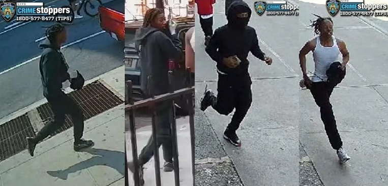 La uniformada ha despachado fotografías de vigilancia de los tres sospechosos. Precisa que el primer sospechoso fue visto por última vez con una sudadera negra con capucha, pantalones deportivos negros y zapatillas negras, y el segundo atracador también con una sudadera negra con capucha, pantalones deportivos negros, zapatillas multicolores y una mascarilla quirúrgica negra.
