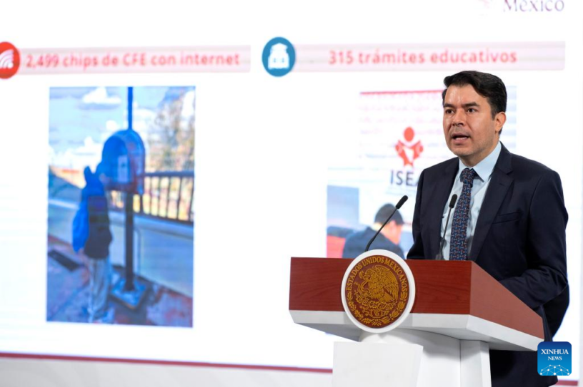 Imagen cedida por la Presidencia de México del subsecretario de Derechos Humanos, Población y Migración, Arturo Medina, hablando durante la conferencia de prensa diaria del Gobierno mexicano, en Palacio Nacional, en la Ciudad de México, capital de México, el 16 de junio de 2025. Medina detalló que como parte de la estrategia denominada «México te Abraza», implementada frente a las políticas migratorias de Estados Unidos, del 21 de enero a la fecha, se han recibido a 24.082 mexicanos en los centros de atención fronterizos. (Xinhua/Presidencia de México)