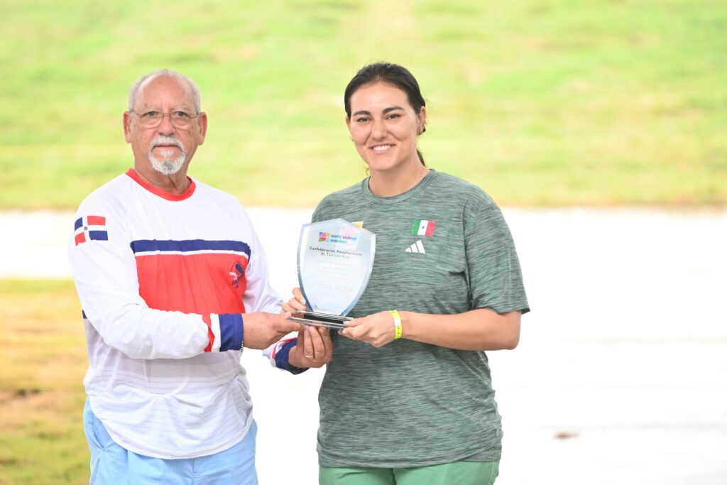 José Miguel Robiou, presidente de la Fedota, premió a la doble medallista olímpica Alejandra Valencia, de México.